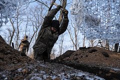 При температуре в минус 20 градусов по Цельсию украинцы быстро готовят свою третью линию обороны