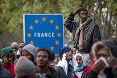 Мигранты собираются возле терминала Евротоннеля в Кокелле 30 июля 2015 года в Кале, Франция